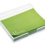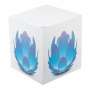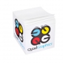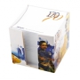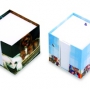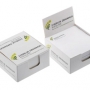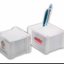 V plastični kocki so listki popolnoma zavarovani in tabniko najdlje upora. Konstrukcija omogoča tudi dodaten predelek za pisala.